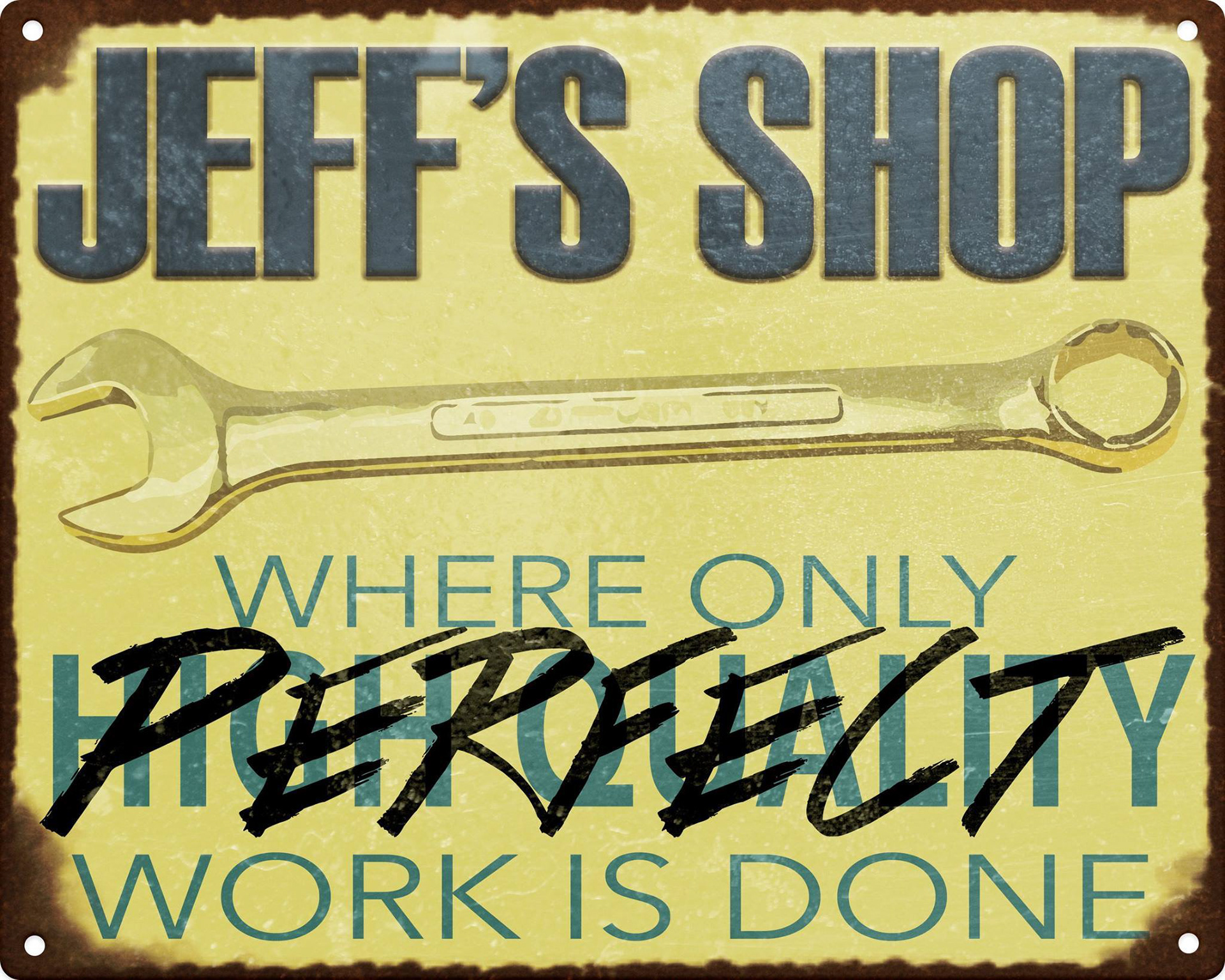 A faux tin sign created in Photoshop for a client's coworker. He wanted it to appear that the sign originally said one thing, but like someone took a sharpie to it and changed the wording.